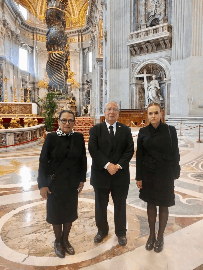 Representando a la presidenta de México, Claudia Sheinbaum, estuvieron presentes en el funeral del Papa Francisco, en la Plaza de San Pedro, la Secretaria de Gobernación, Rosa Icela Rodríguez; acompañada por Clara Luz Flores, titular de la Unidad de Asuntos Religiosos de la Secretaría de Gobernación y Alberto Barranco, embajador de México ante el Vaticano.