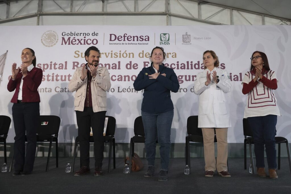 Más tarde, en Santa Catarina, la Presidenta de México, encabezó la supervisión de obras del Hospital Regional de Especialidades del IMSS, que beneficiará a más de 300 mil derechohabientes.