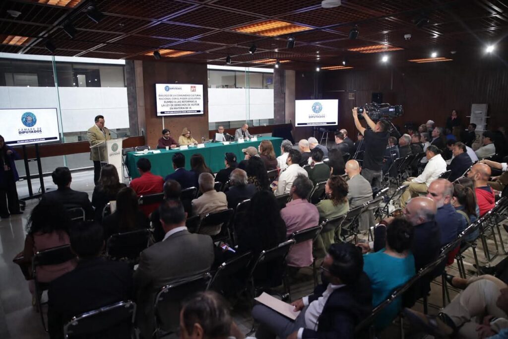 En el marco del Diálogo de la Comunidad Cultural Nacional con el Poder Legislativo: rumbo a las reformas a la Ley de Derechos de Autor, en materia de Inteligencia Artificial (IA), Santiago González resaltó la importancia de fortalecer jurídicamente a las sociedades de gestión colectiva para que puedan hacer frente a las grandes industrias que buscan lucrar sin reconocer ni remunerar adecuadamente la autoría.
