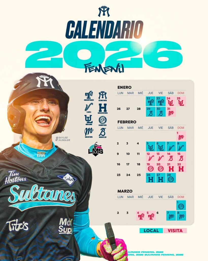 Este jueves comienza la temporada 2026 de la Liga Mexicana de Softbol, en la que Sultanes Femenil recibirá a las Olmecas de Tabasco, a las 20 horas en el Estadio Walmart.