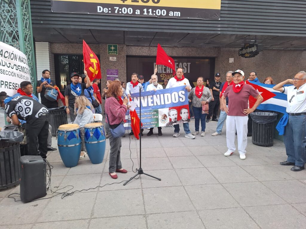 En la esquina de Zaragoza y Morelos, en el centro de la ciudad de Monterrey, Nuevo León, se dio cita el Comité Regional del Movimiento Mexicano de Solidaridad con Cuba, conjuntamente con fuerzas políticas y sociales como: la Asociación Nacional de Abogados Democráticos, Partido de los Comunistas, Partido Comunista Mexicano, Maíz, A.C., Maestros de la CENTE, Trabajadores Jubilados de la UANL y público en general.